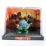 A mech from Armored Trooper Votoms series, also known as Scope Dog. This figure comes in a 4 x 5 x 3" dome diorama, with a background and textured base. Actual figure inside the diorama stands at about 2" in height, and is packaged in a box with Japanese text packaging.