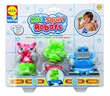 Mix, match and squirt 3 silly robots. 2 soft pieces easily snap together and apart for lots of building fun.